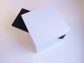 Made from a single piece of 2mm sheet steel that has been laser cut and folded into shape. Powder coated Gloss White