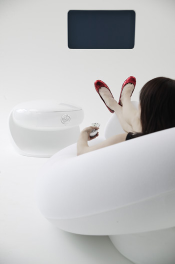 This futuristic fiberglass entertainment pod was Designed exclusively for Intel's new Wireless system.